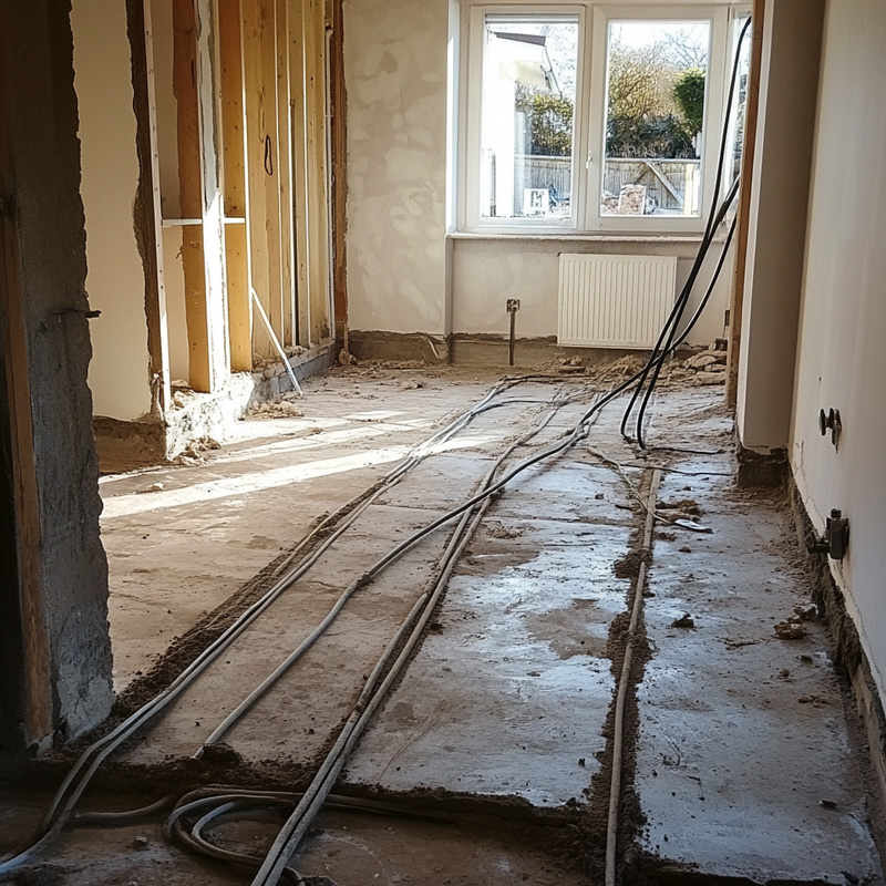 Eine fachgerechte, geordnete Verlegung der elektrischen Leitungen ist in vielen Fällen nicht möglich. Dies führt zu zahlreichen Schwachstellen und Unterbrechungen in der Dämmschicht unter dem Estrich. Dadurch kommt es zu Mängeln bei der Trittschall- und Wärmedämmung. Um solche Probleme zu vermeiden, sind eine detaillierte Planung und eine sorgfältige Bauüberwachung zwingend notwendig.